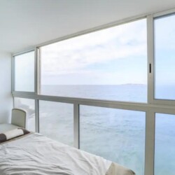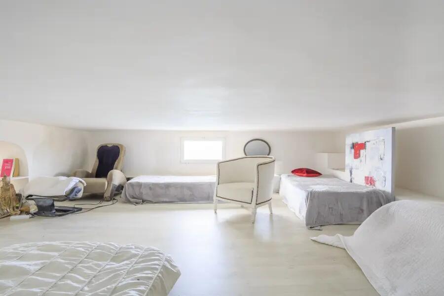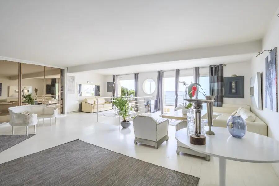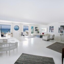 3 chambres, mezzanine, 2 W.C, 1 salle de bain + 1 salle d’eau, une terrasse de 70m² donnant sur la mer.