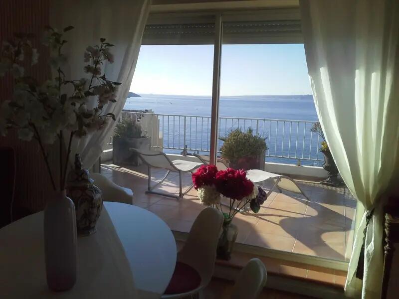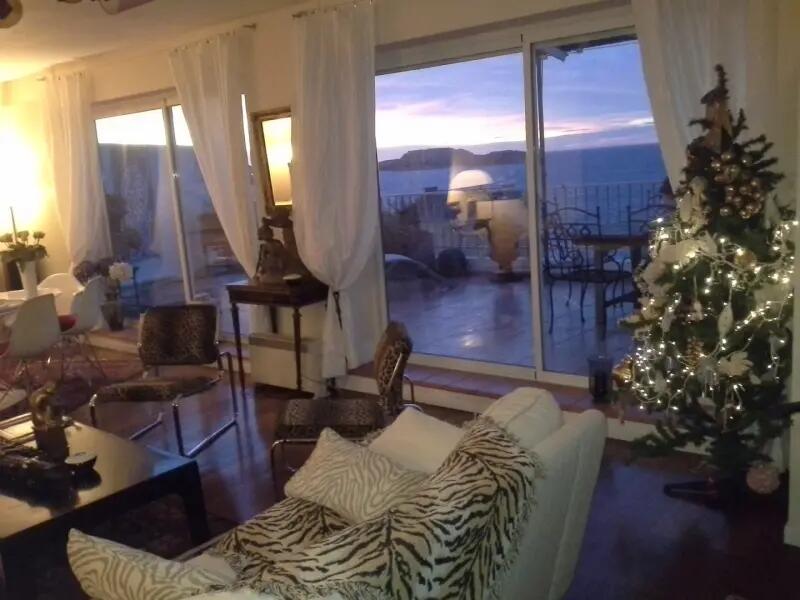 Cet appartement est situé au 6ème et dernier étage avec ascenseur, il jouit d’une grande terrasse de 60m2 et d’une vue époustouflante sur la mer toujours changeante, les îles et les bateaux en partance vers la Corse ou l’Afrique du Nord , il est raffiné, meublé avec soin ,et le linge fourni est de qualité….de plus il est idéalement situé, proche du centre ville pour les visites et le shopping , mais aussi à côté des plages, la plus proche que l’on baptise “la piscine ” est à quelques mètres, on peut aussi y louer des canoës ,les autres sont à peine plus loin ! Les meilleurs restaurants de Marseille sont la aussi avec la spécialité la bouillabaisse , ici vous êtes tout à la fois en ville et dans une station balnéaire