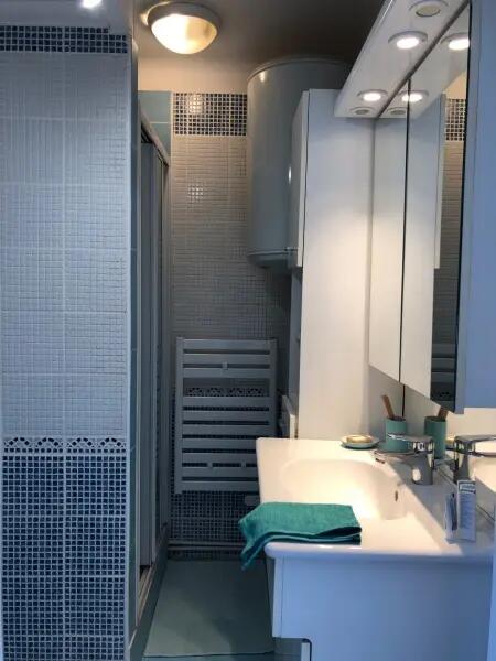 Comporte une chambre et un canapé lit. Une salle de bain et une cuisine équipée