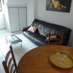 Il est constitué d’une cuisine entièrement équipée, d’un salon avec canapé, fauteuil, d’une TV reliée au câble. Accès internet, wifi.