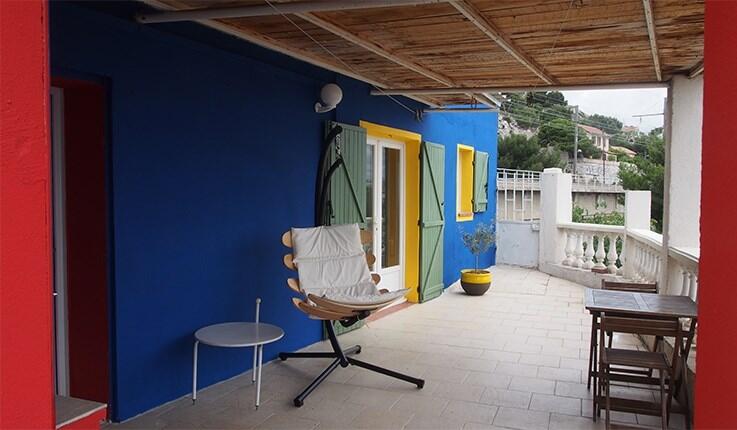 Quasi-studio avec grande terrasse plein sud. Vue magnifique sur le village, le port et la baie de Marseille.