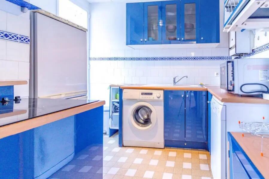 * 1 cuisine entièrement équipée : Plaque à induction, four, micro-ondes, lave-vaisselle, lave-linge, réfrigérateur, congélateur, vaisselles, couverts pour 4 personnes…