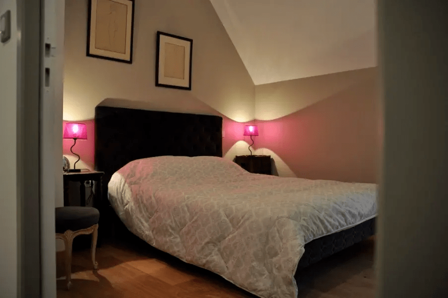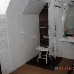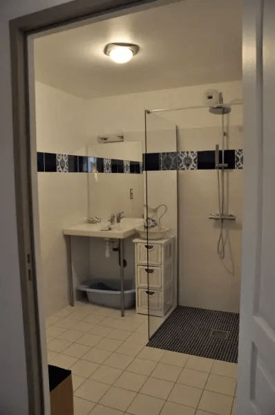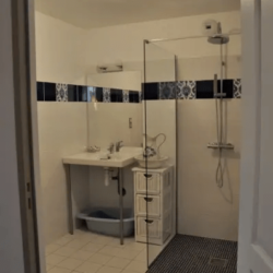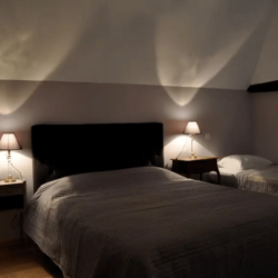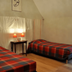 Le rez de jardin est composé de deux chambres (une avec 2 lits 90 x 200 jumelables, l’autre avec 1 lit 140×190), salle d’eau avec douche italienne, wc mobilité réduite.
