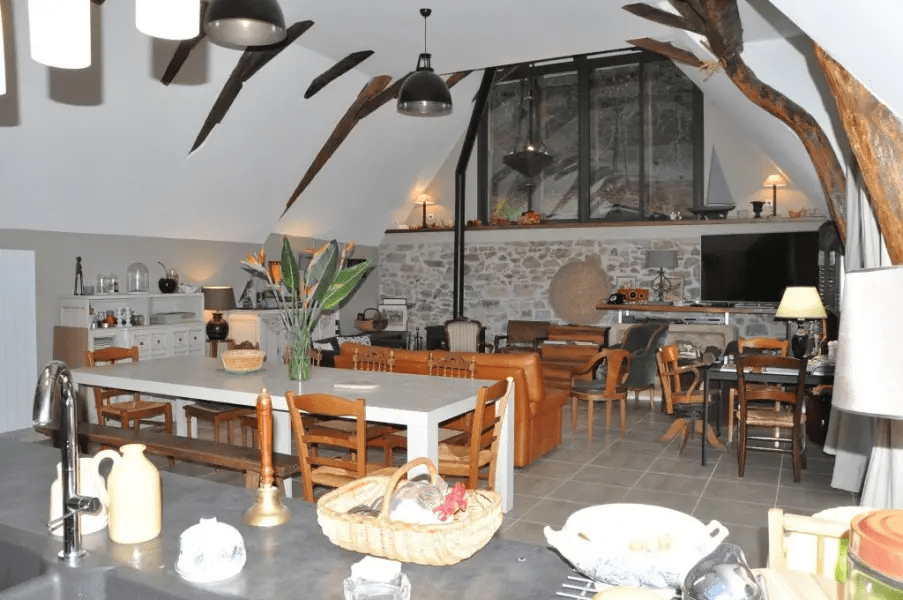 Chaque niveau a un grand salon/séjour/cuisine aménagée.