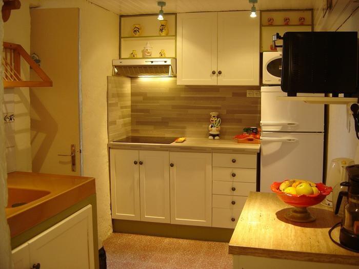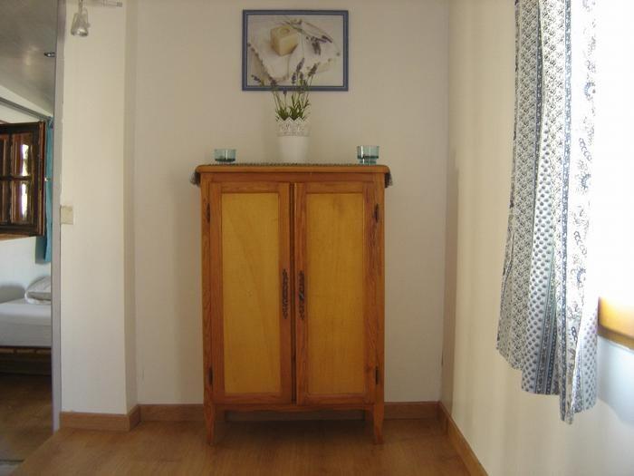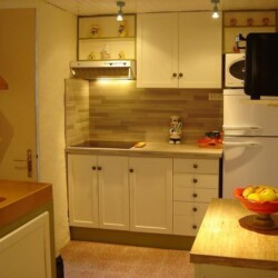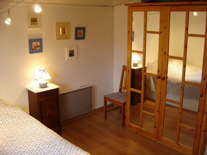 Ce cabanon est composé d’un séjour avec meubles, télévision écran plat, cheminée. Une cuisine séparée entièrement meublée et équipée de : réfrigérateur/congélateur, table à induction 3 feux, hotte, four, micro-ondes. Une salle d’eau avec douche, vasque. Un WC. A l’étage, 2 chambres ayant chacune 1 lit de 2 personnes en 140, et une armoire (penderie/lingère). Chaque pièce est équipée d’un radiateur électrique. Une terrasse avec un salon de jardin et un barbecue. L’accès aux chambres se fait par un escalier.