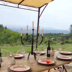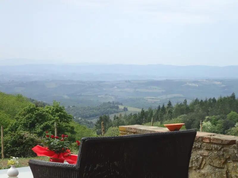 La Félicita est une ancienne dépendance d’une ferme Toscane en pierres typiques du 18 ème. S. entourée de 3 000 M2 de bois, cyprès, oliviers ; vignes, dans une zone où les animaux sont protégés (biches cerfs, renards, porc épics, sangliers…). La Félicita domine par sa position panoramique la campagne Siennoise. (Visibilité 40 km) Elle est indépendante et se trouve au cœur du Chianti Classico « Gallo Nero ».