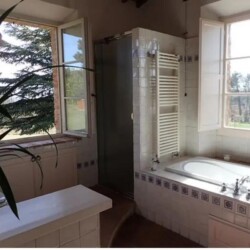 2 Salles de bains : la première au rdc équipé d’une douche, WC, bidet, sèche-cheveux. La deuxième au 1er étage avec vue panoramique, équipée d’une douche, d’une baignoire, WC, bidet et sèche-cheveux.