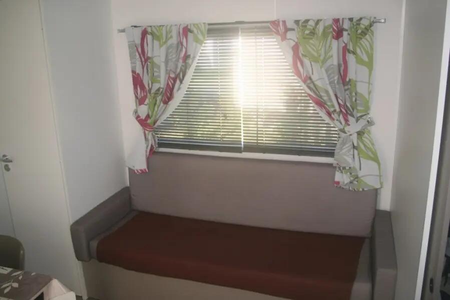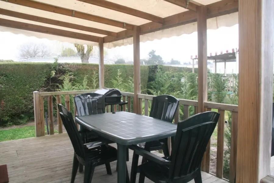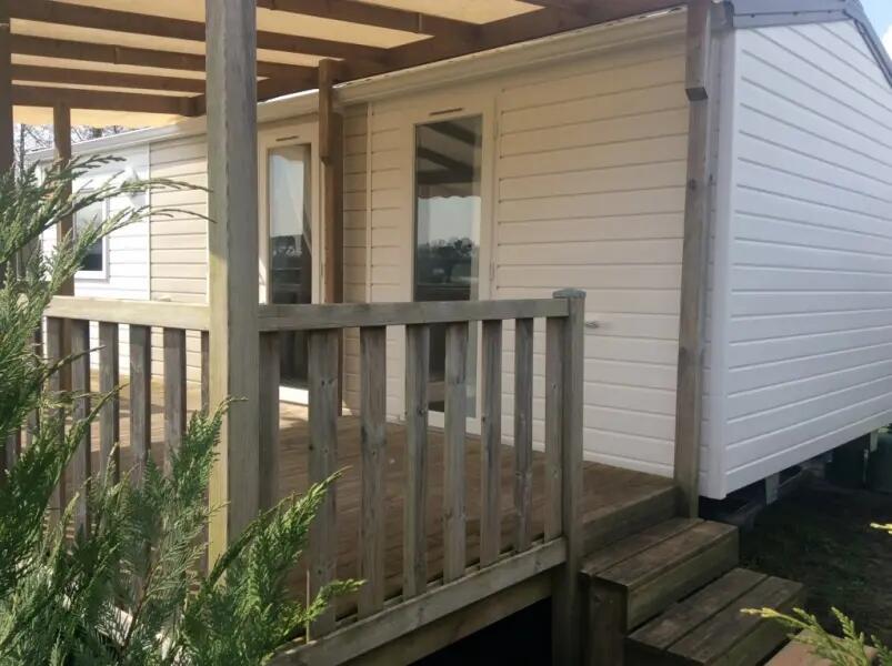 Loue Mobil-home climatisé 2 chambres séparés “Trigano Sublima”, confort de 28m/2, 4 à 6 personnes avec une jolie terrasse en bois spacieuse et couverte exposée plein soleil.