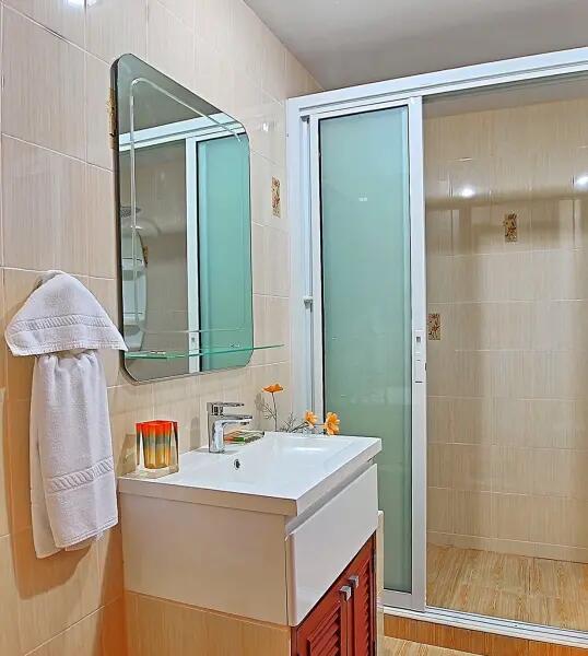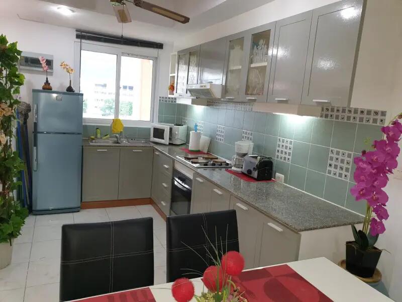 Appartement entièrement refait en 2019 Ref 601 de 100 m² 24h24 7h7, idéalement situé dans une voie privée au centre-ville très calme, ascenseur, piscine privée de grande taille sur la terrasse de la résidence (26 appartements seulement) vue sur la mer et la montagne, bains de soleil. Appartement meublé avec goût, décoration soignée, Wifi, air-conditionné, ventilateur au plafond dans toutes les pièces, ainsi que sur la grande terrasse équipée de bains de soleil, et d’un coin repas (petit déjeuner et apéro).