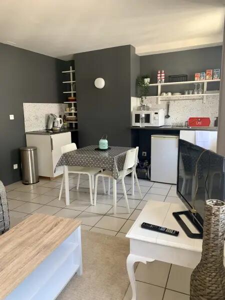 Cet appartement dispose d’un coin salon, d’une télévision écran plat et d’une salle de bains. Sa cuisine est équipée d’un micro onde, d’une plaque induction et d’un frigo avec réfrigérateur.