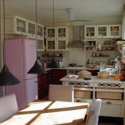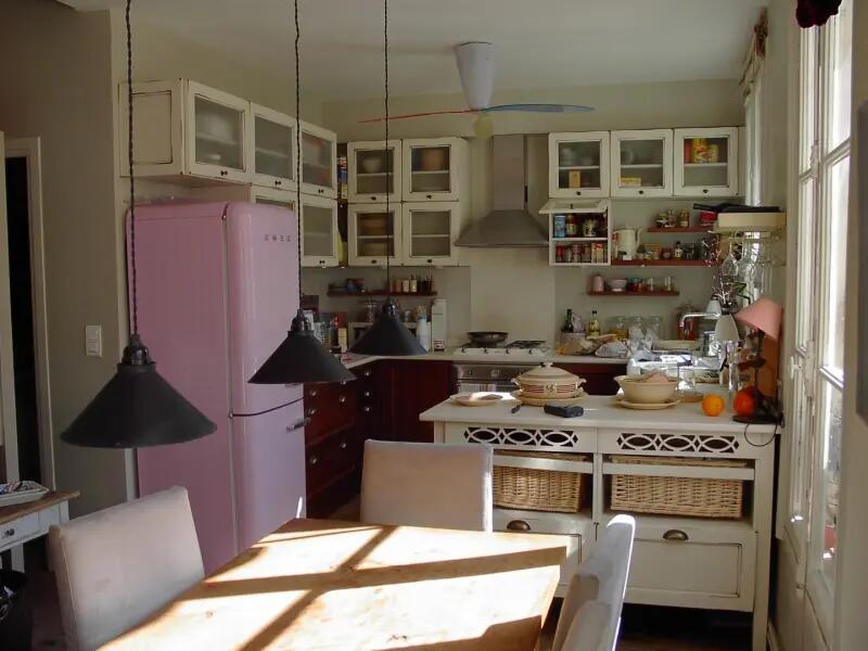 -Une grande cuisine-salle à manger, spécialement conçue pour discuter entre amis pendant des heures autour d’une bonne bouteille de Saint Julien. Très ensoleillée.