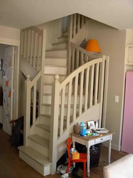 -Un premier escalier qui mène à un étage avec deux chambres sur cour. Deux lits doubles.