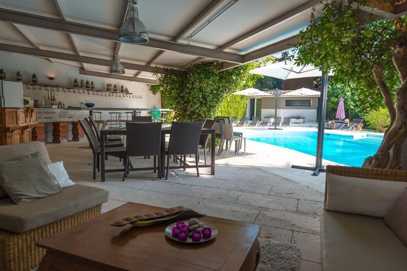 Profitez de son jardin et de sa magnifique piscine de 11m sur 6.5m chauffée, comprenant pool house, grand bar, frigo Américain, grill et barbecue, un coin lounge et un bungalow indépendant.